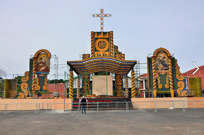 - CNS’ Rhina sent out the first #popeinparaguay Tweet today. It gives you a peek at the altar and what it’s made of. Pope Francis will celebrate Mass outside the Caacupe Marian shrine in Paraguay July 11 and in the field at Nu Guazu Park July 12.