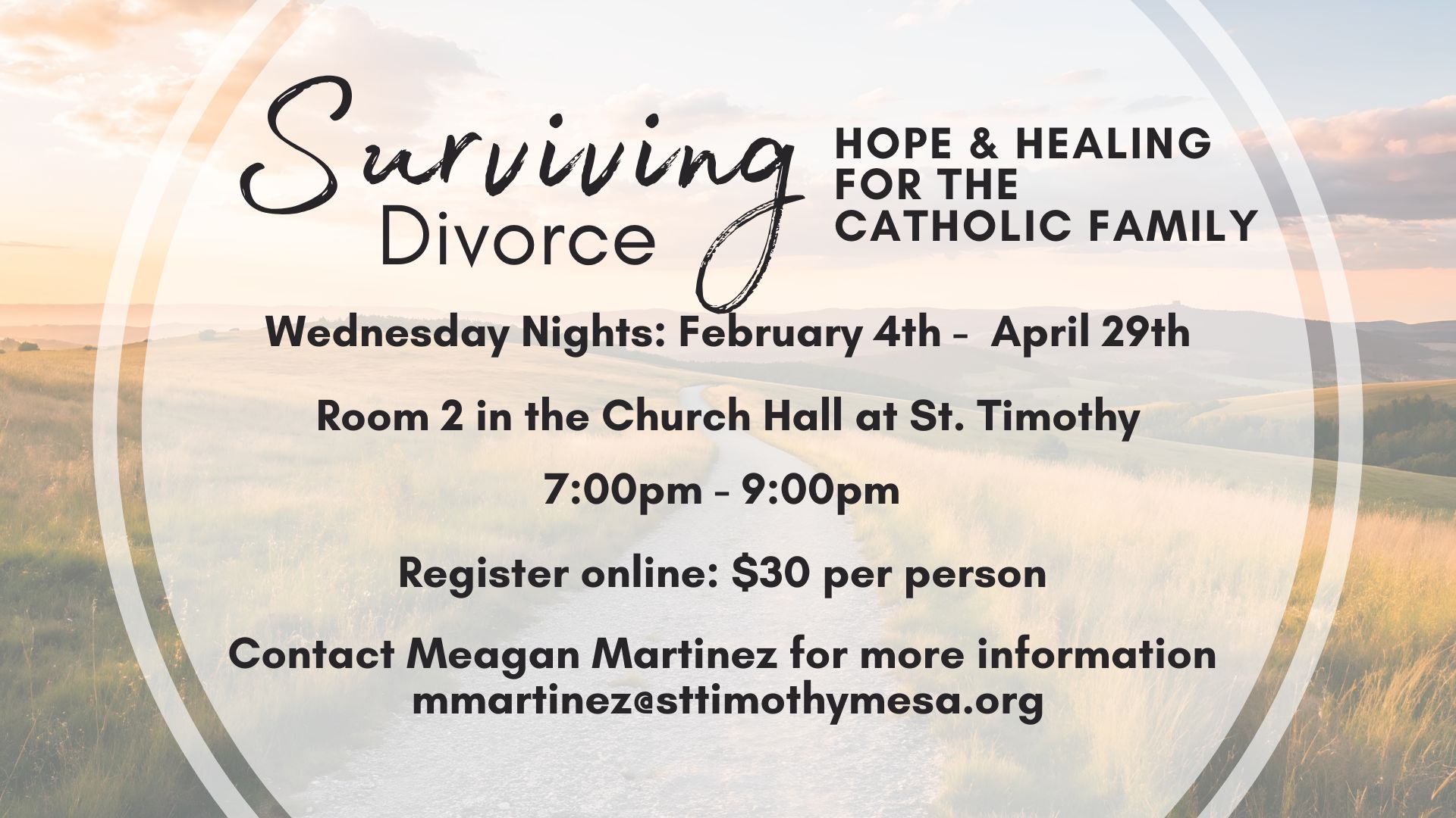 You are warmly invited to attend our “Surviving Divorce” support group at St. Timothy. Led by caring individuals that will share how they have personally found hope, healing and comfort after divorce through the power of Christ’s Love and Grace. You will also learn coping skills, gain wisdom and receive spiritual and practical advice from […]