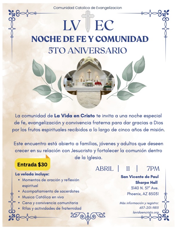 La comunidad de La Vida en Cristo te invita a una noche especial de fe, evangelización y convivencia fraterna para dar gracias a Dios por los frutos espirituales recibidos a lo largo de cinco años de misión. Este encuentro está abierto a familias, jóvenes y adultos que deseen crecer en su relación con Jesucristo y […]